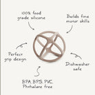 Help soothe your baby's irritated gums with our line of teethers. Made from 100% non-toxic, food-grade silicone, and designed to be easy to grasp by tiny fingers, our teether balls are safe for your baby to use. Their geometric design and sophisticated colors make them a stylish addition to your home.