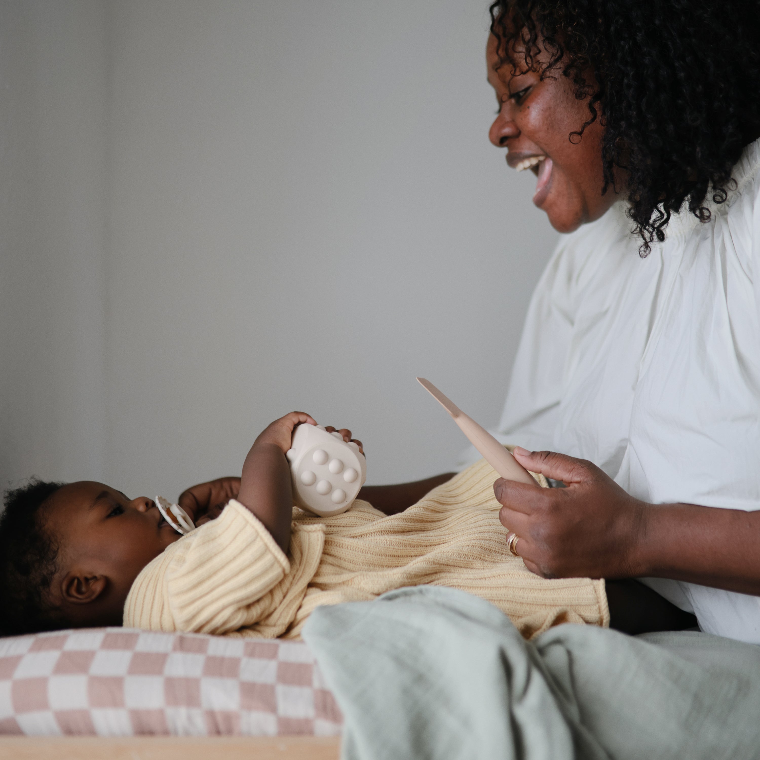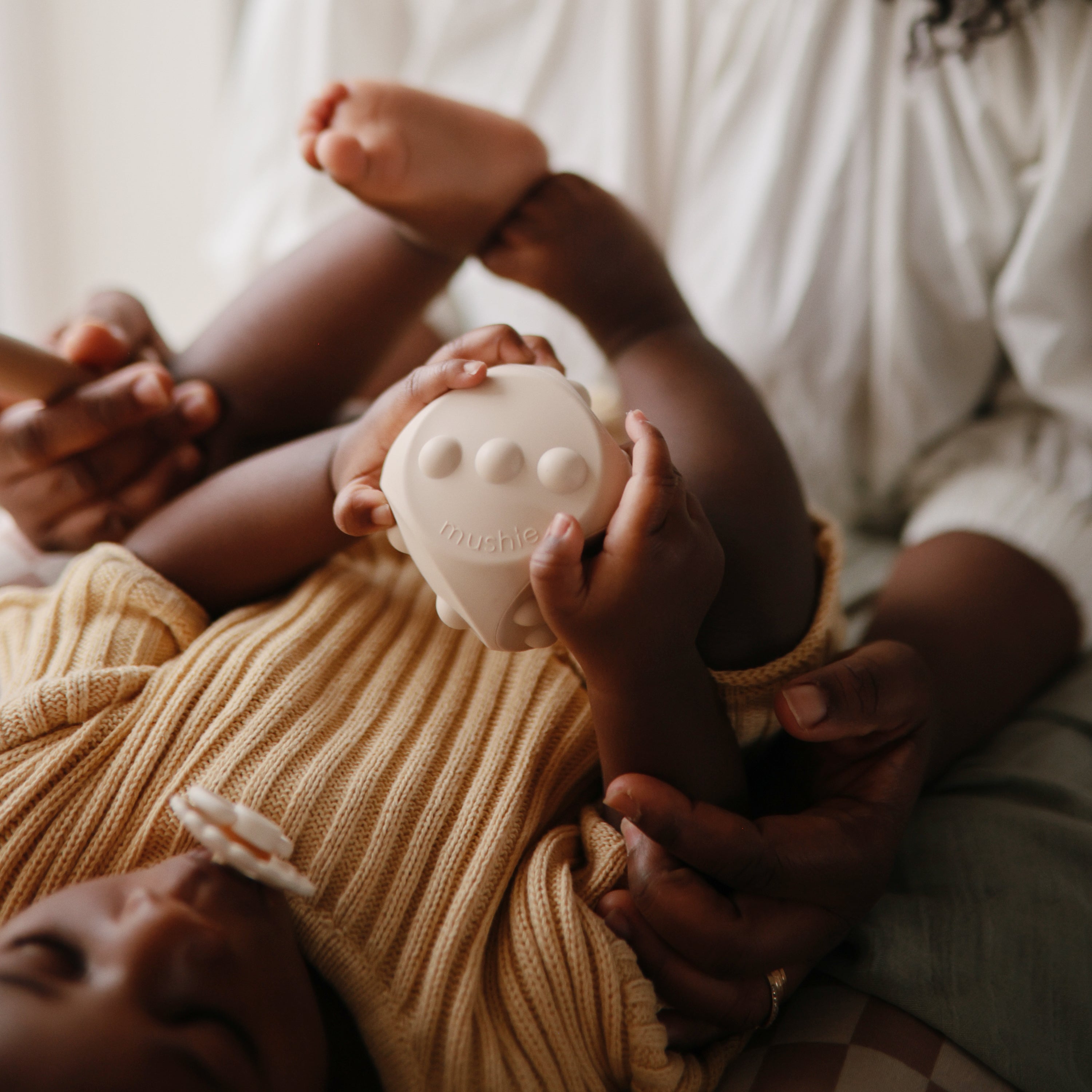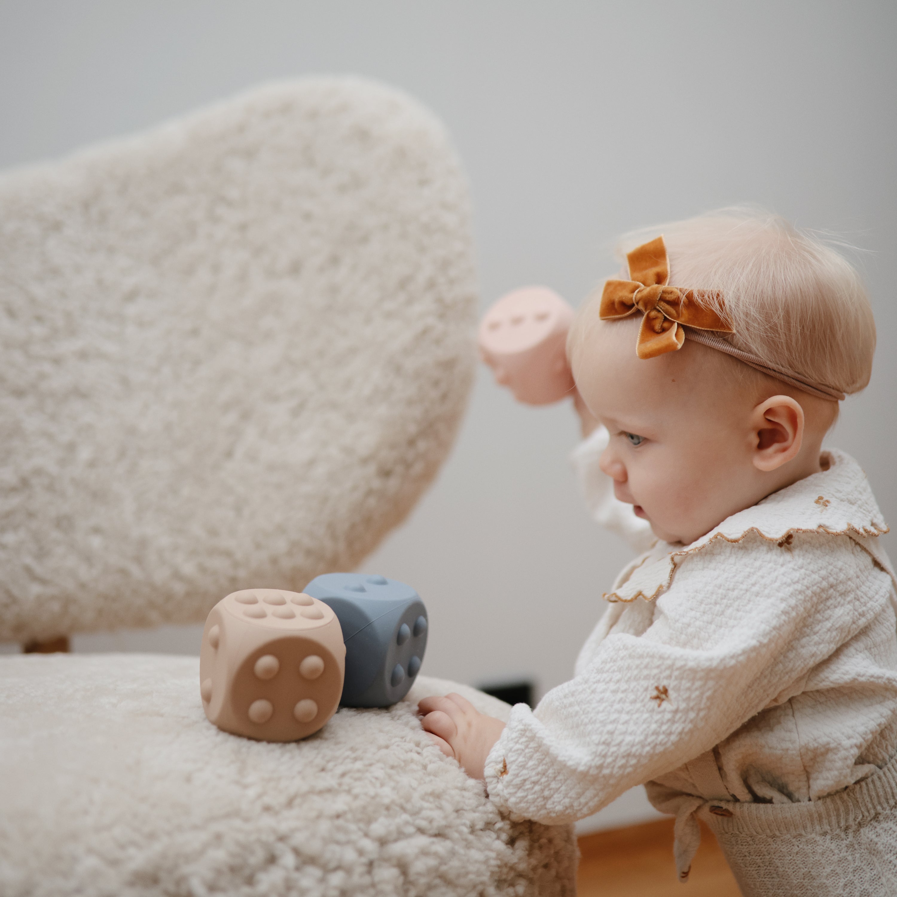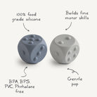 Combine learning and play with the mushie Dice Press Toy. Made with 100% food grade silicone, the pair of dice features poppable dots on each face, encouraging fine motor skill development while also providing a tool for teaching counting and simple arithmetic. A sensory toy and STEM toy all in one, this set of two was developed to keep little hands and minds busy.