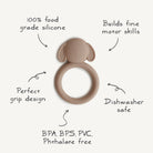 Help soothe your baby's irritated gums with our line of teethers. Made from 100% non-toxic, food-grade silicone, and designed to be easy to grasp by tiny fingers, our teethers are safe for your baby to use. Their playful design and sophisticated colors make them a stylish addition to your home.