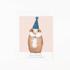 Hand painted Guinea Pig in a birthday hattext reads “Happy Birthday! It's Guinea be Great!”