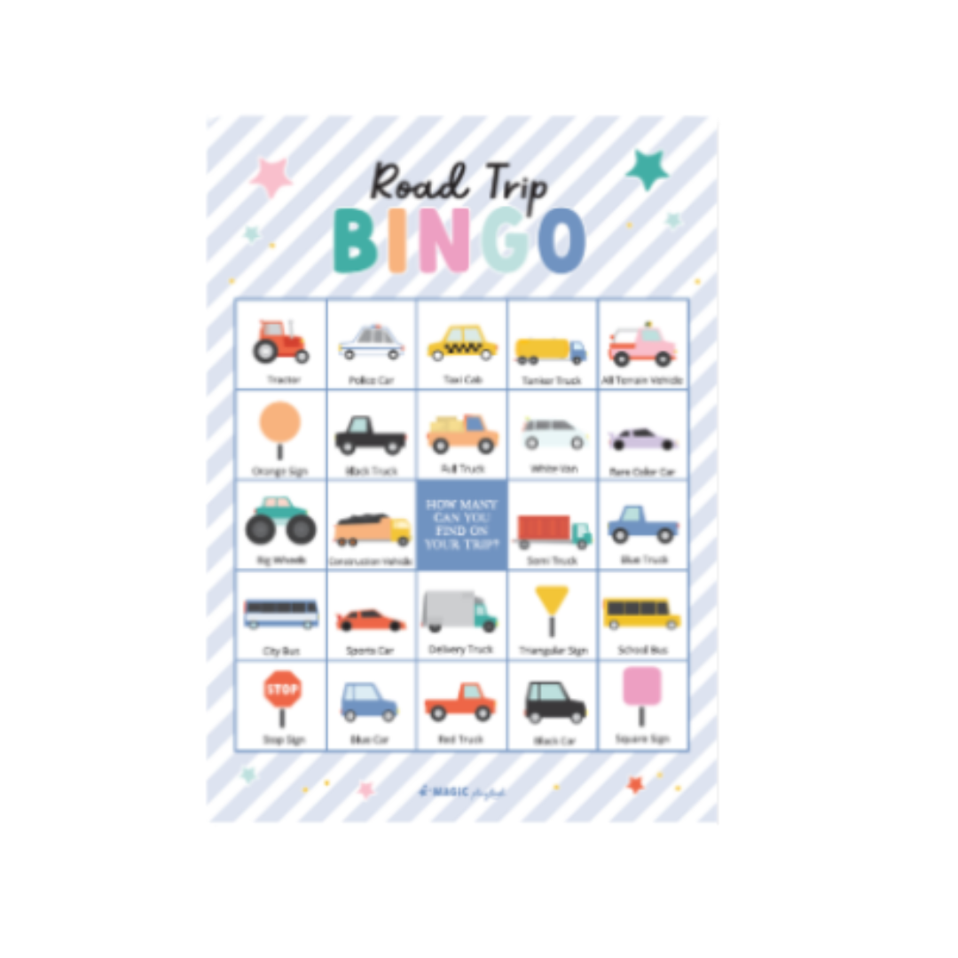 Spice up your next road trip with our Car Bingo Notepad! Keep kids entertained and screen-free while spotting road trip sights.