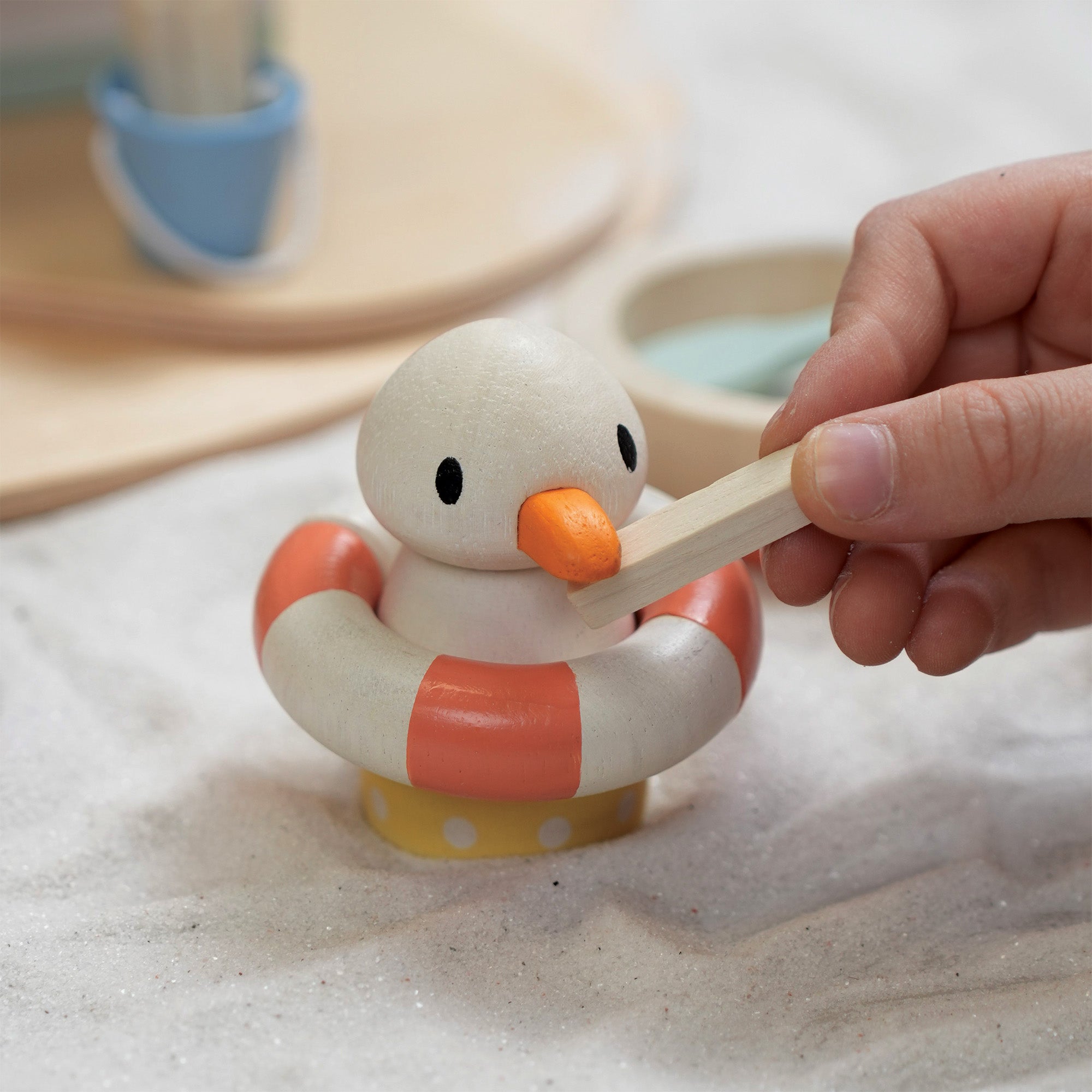 Gingham Muslin and Bear Wood Rattle Gift Set