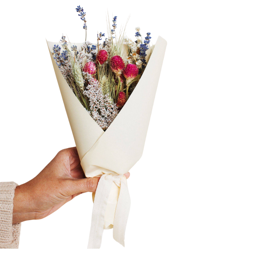 Handcrafted and grown in the USA, each bouquet is made of naturally dried flowers for a lasting touch of nature. 12" tall x 6" wide Fills a 4"-6" tall vase with a 2" opening
