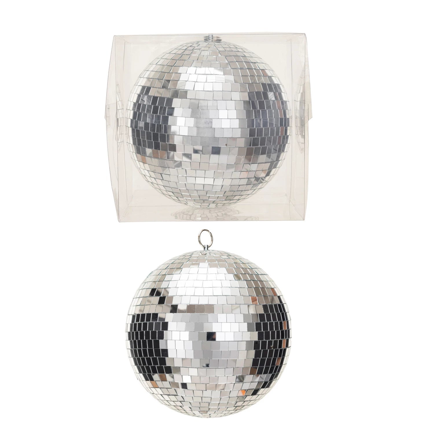 This 10" round hanging glass and foam disco ball is a dazzling addition to any celebration or decor. With its silver finish, it reflects light in every direction, creating a dynamic and vibrant atmosphere reminiscent of classic discotheques. Packaged in an acetate box for safe transport and storage, this wall hanger is not only a nod to nostalgia but also a statement piece that enlivens any environment.
