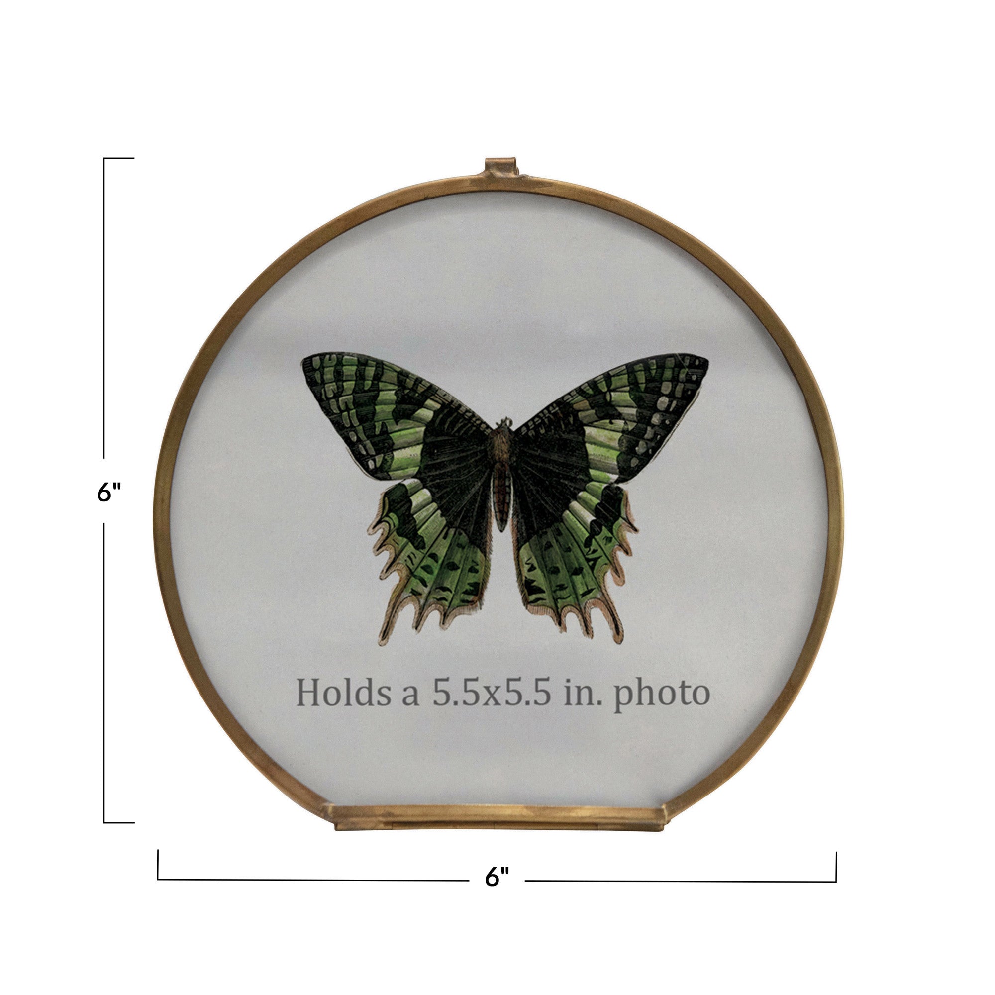 -6" Round Brass & Glass Photo Frame (Holds 5-1/2" Round Photo)