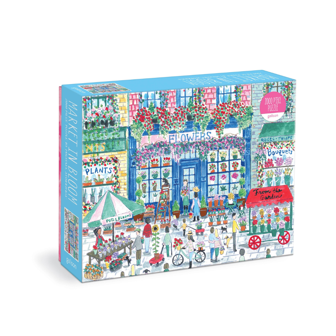 Award-winning designer, illustrator, and creative director Michael Storrings beautifully illustrates the perfect sunny day in the market with Michael Storrings Market in Bloom 2000 Piece Puzzle. Galison puzzles are packaged in matte-finish sturdy boxes, perfect for gifting, reuse, and storage. An insert of the full puzzle image is also included.