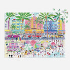 Experience the vibrant energy of Miami’s legendary coastline with this 1000-piece puzzle by Michael Storrings. This sun-soaked scene blends the best of South Beach—from beachgoers and turquoise waves to the iconic Art Deco hotels along Ocean Drive. Retro cars, swaying palms, rooftop gatherings, and bustling street life bring the mid-century charm and coastal glamour of Miami to life in one beautifully detailed illustration.