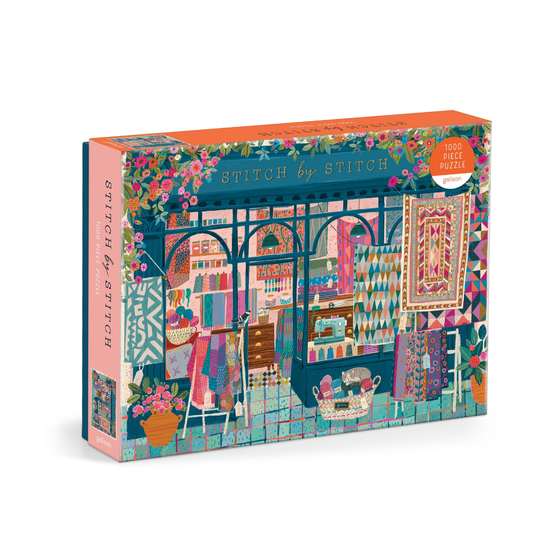 The Stitch by Stitch 1000 Piece Puzzle from Galison features a charming illustration from bestselling artist Victoria Ball. Known for her cozy and charming illustration style, Victoria Ball developed a quilting and crafting themed storefront image named Stitch by Stitch. Galison puzzles are packaged in matte-finish sturdy boxes, perfect for gifting, reuse, and storage.