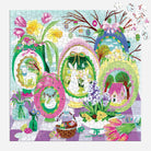 Celebrate spring's arrival with this 500-piece foil puzzle by Joanna Clay featuring an enchanting Easter tableau. The composition showcases intricately decorated eggs serving as windows into charming animal scenes. Shimmering foil accents enhance the festive atmosphere throughout, adding dimensional elegance to Clay's whimsical design.