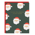 Send a little holiday magic their way this season. Featuring a cheerful pattern of hand-illustrated Santas paired with a gold foil Merry Christmas, this card brings warmth and wonder to loved ones this season.