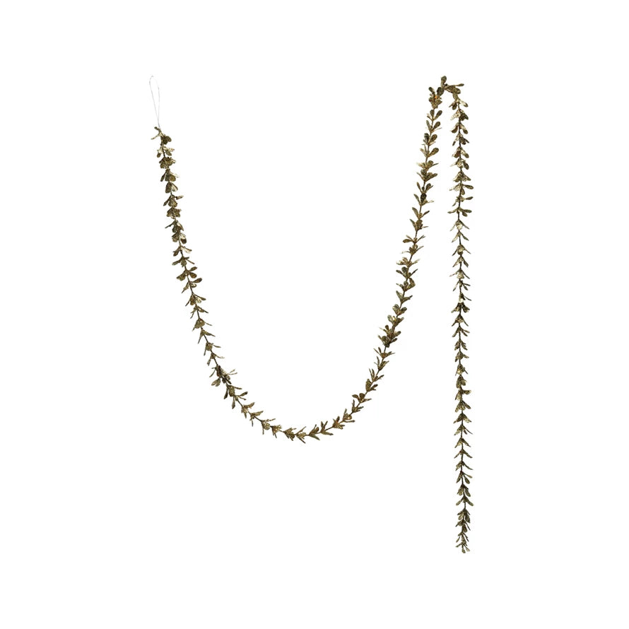 72"L x 1"H Faux Boxwood Garland w/ Gold Glitter