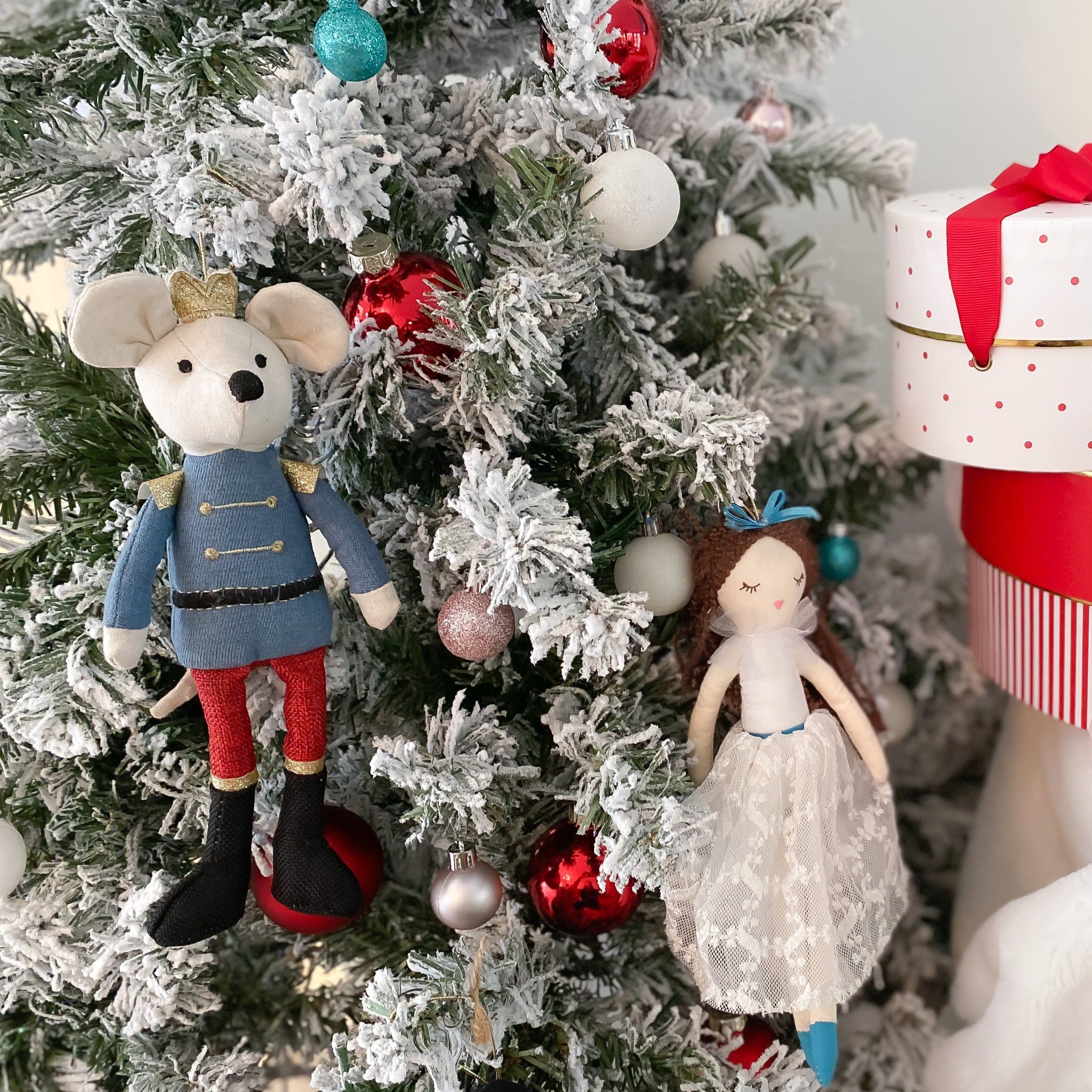 - Each ornament is stitched with intricate embroidery, stitching and multiple fabrics and textures to bring these plush dolls to life.