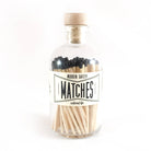 Add charm and functionality to your home with our vintage apothecary collection. Vintage labels, playful colors and a functional striker all seamlessly curated for you to enjoy. Each bottle is handcrafted with the upmost care and attention to detail by our family. • 5 1/2" HIGH x 2 1/2" WIDE JAR • 100 MATCHSTICKS AT 3 1/2" TALL • WOODEN CORK TOP WITH LOGO • VINTAGE STYLE LABEL WITH STRIKER BLK101