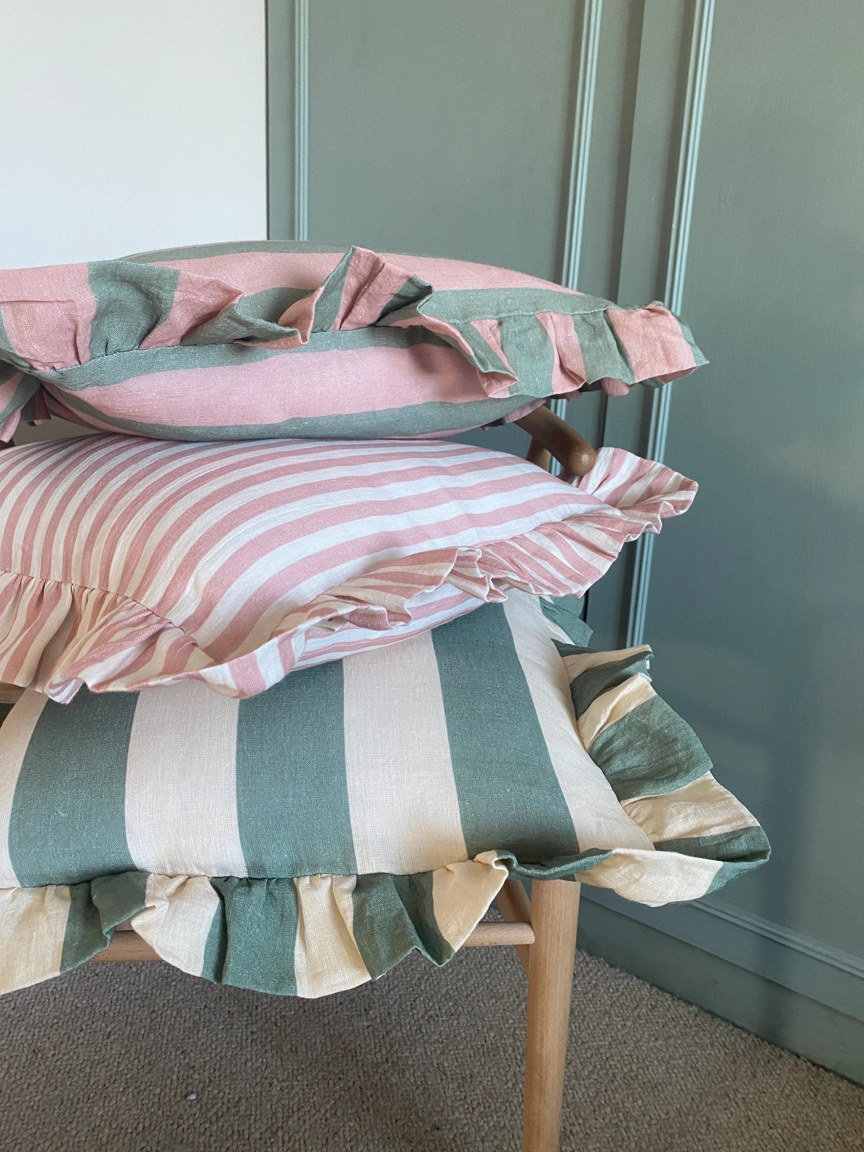 Cushion Cover - 100% European linen digitally printed using eco-friendly dyes with ruffle edge