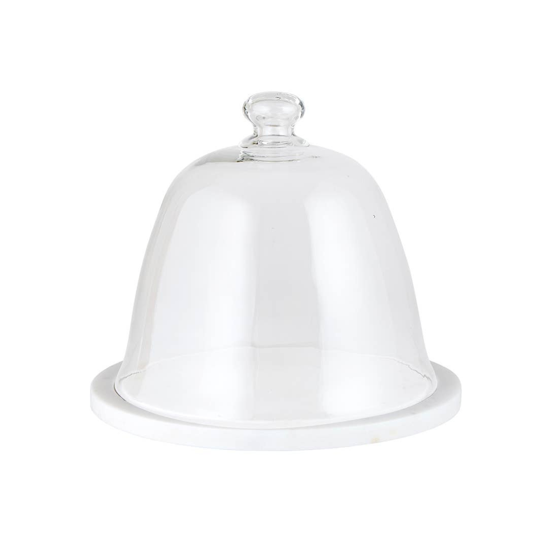 Store any baked goods in this stylish marble + glass dome cake stand.