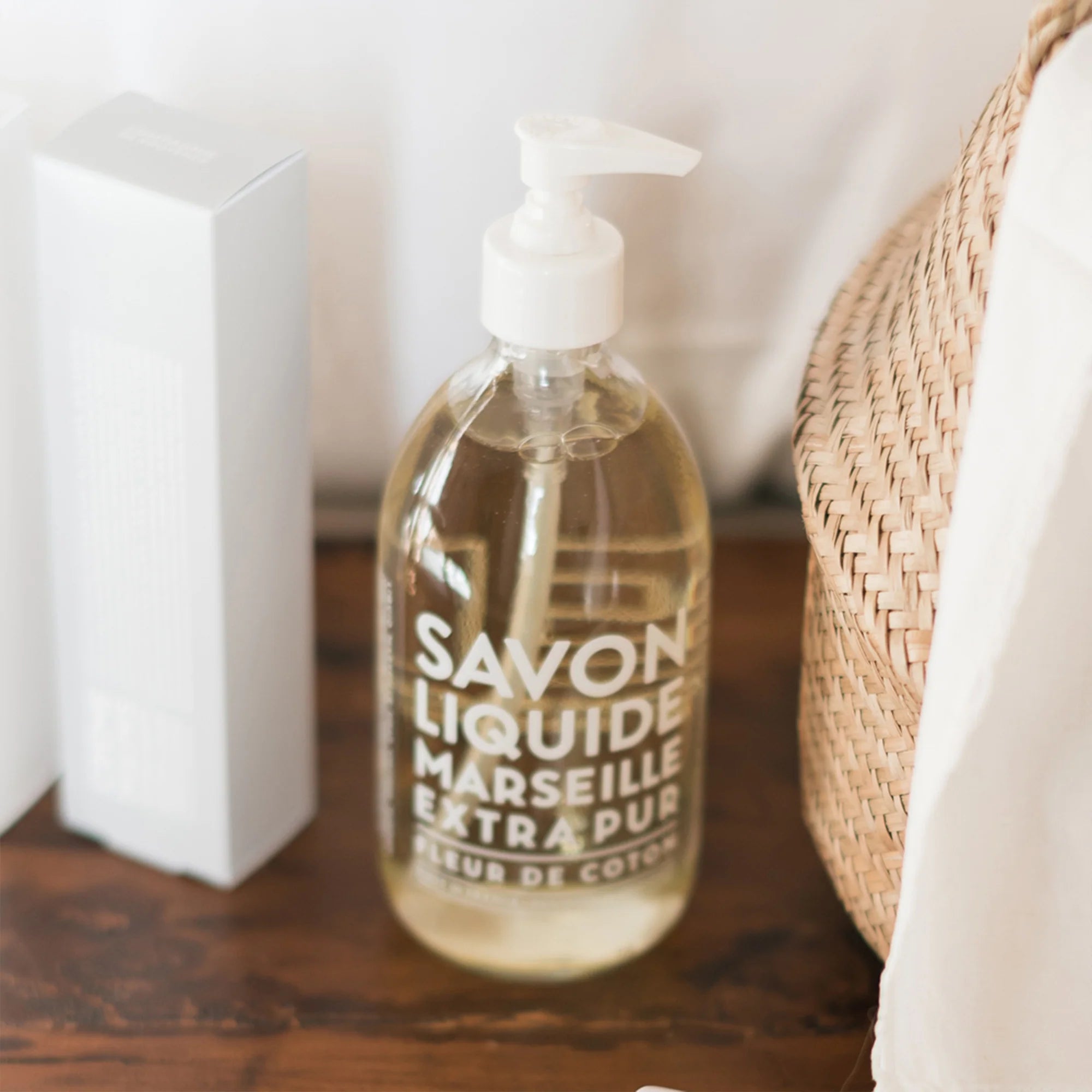 Made in a cauldron according to tradition, as does its ancestor, the authentic cube from Marseille, this liquid soap is elaborated with vegetable oils from Provence. This soap gently cleanses the skin. Presented in a glass pump bottle with a sleek and colorfoul design, it will look great in your kitchen or bathroom, and can be refilled with the corresponding refill bottle.