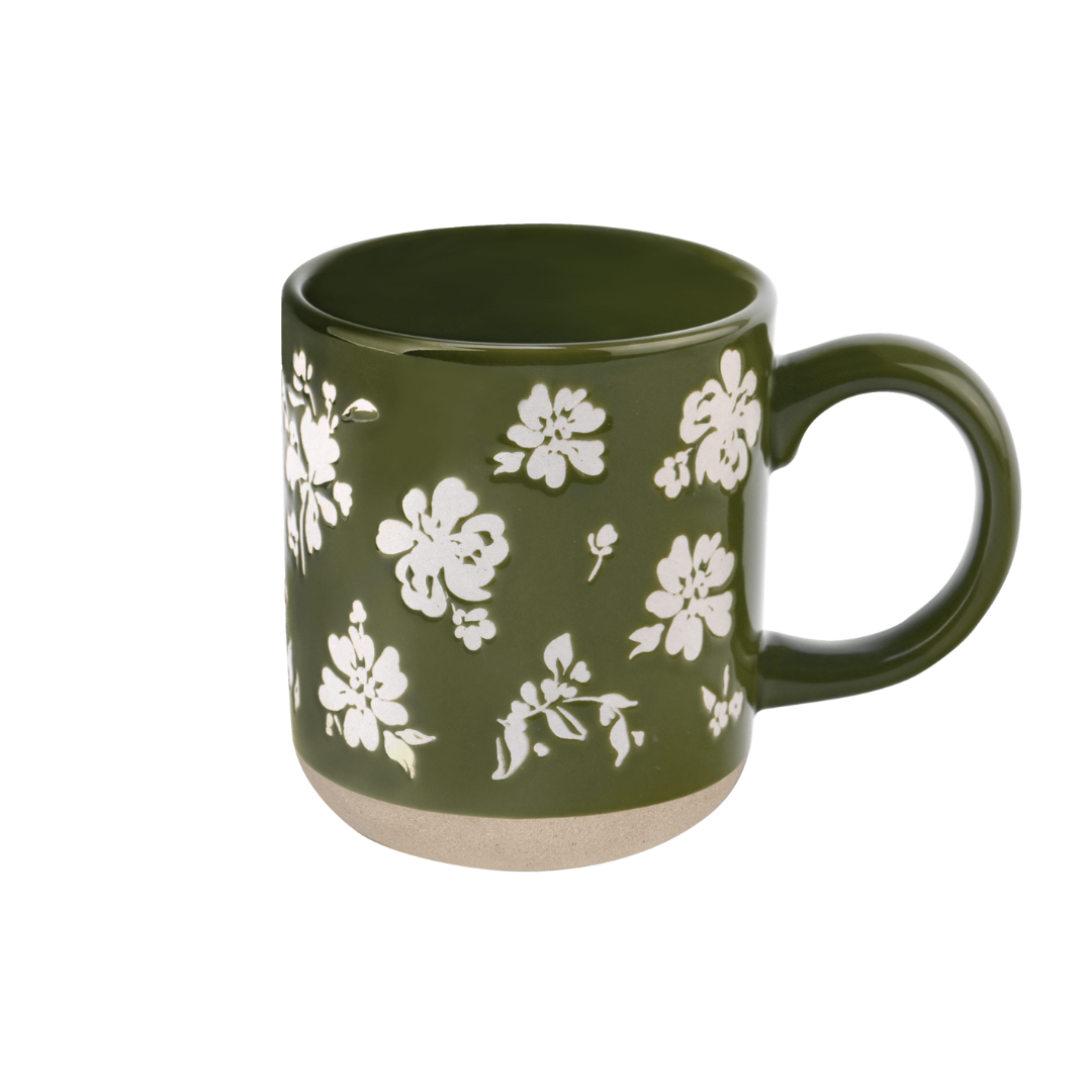 Green Floral Stoneware Coffee Mug