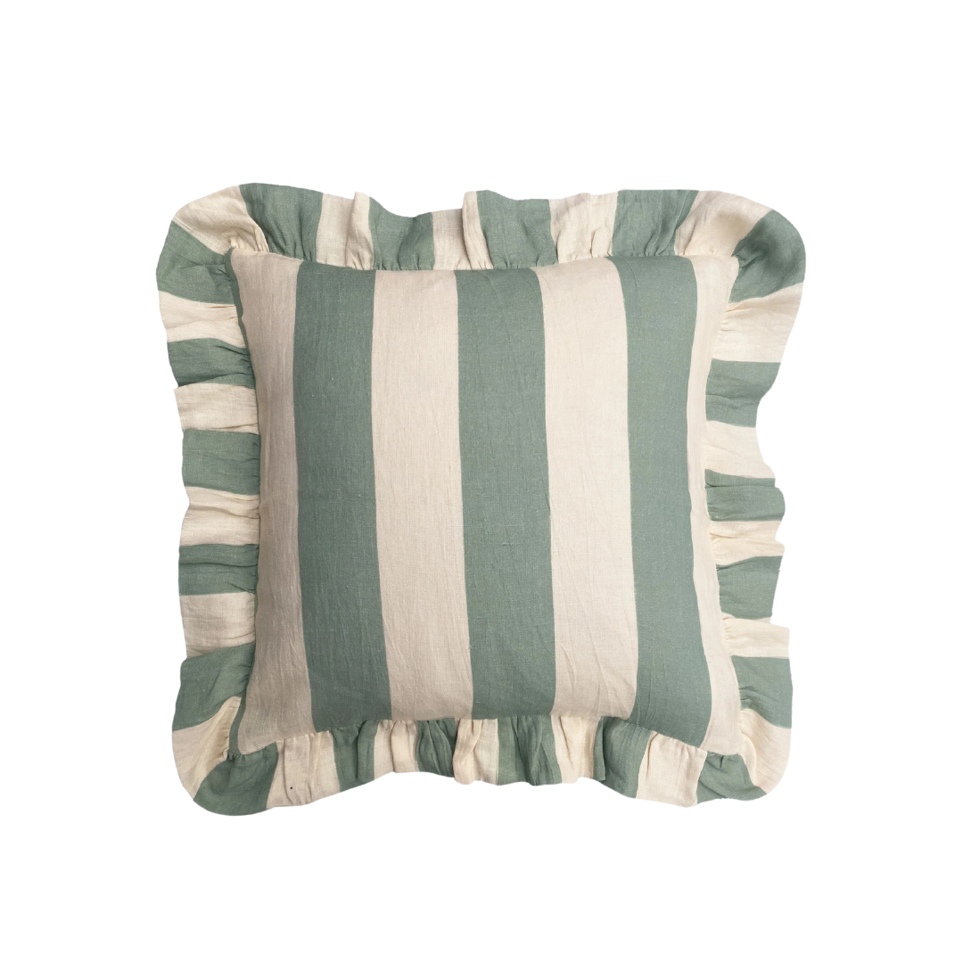 Cushion Cover - 100% European linen digitally printed using eco-friendly dyes with ruffle edge