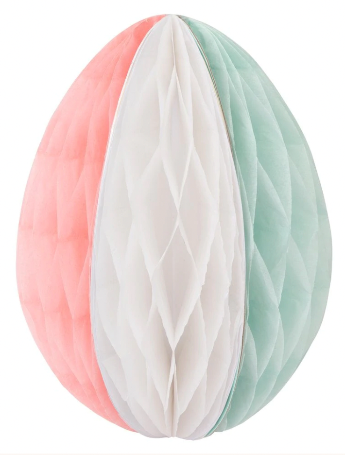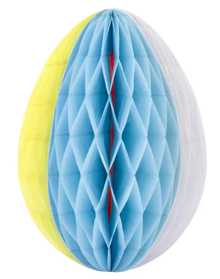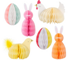If you're looking for Easter decorations that are different to the norm, then you'll love this set. It features two bunnies, two striped eggs, a hen and a chick, with amazing paper tissue honeycomb details. They'll look sensational on your party table, or wherever you want to make a statement to impress your guests.