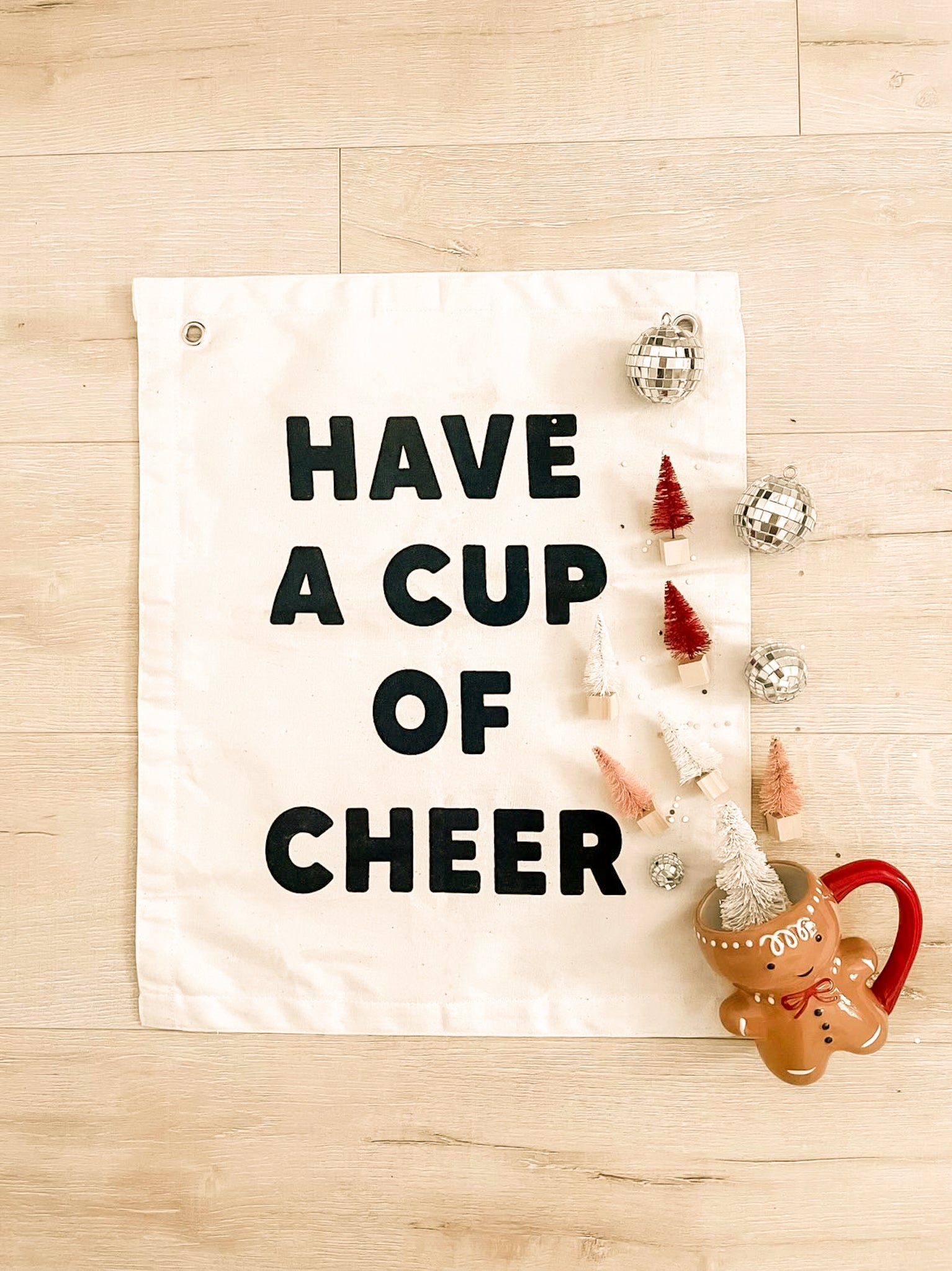"Have a Cup of Cheer" Canvas Banner | Holiday Wall Flag