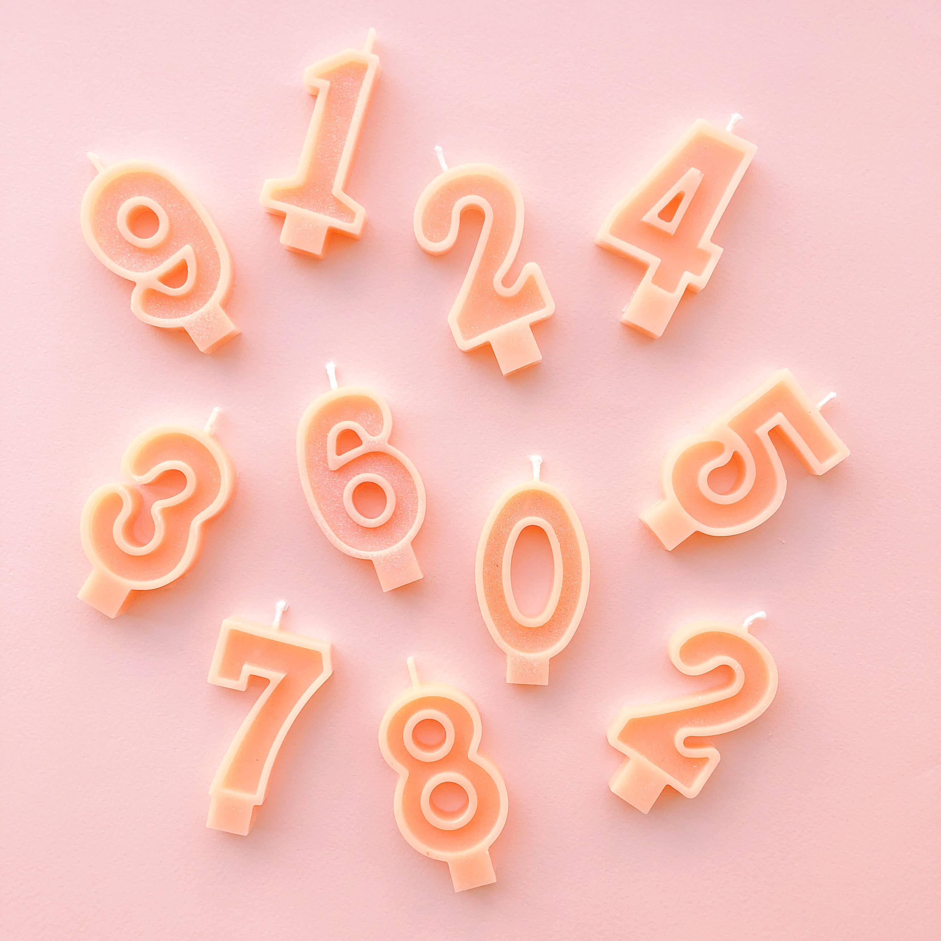 Handmade from pure beeswax and edible, non-toxic dyes, these vibrant candles are a fresh twist on the classic number candles of our childhood. Each candle comes individually packaged in a clear plastic box with a coordinating color backer. Peach candles have a light sprinkling of edible iridescent glitter. - One case contains ten individually packaged candles, #0 through #9 - 3.25 inches tall - Made in Chicago
