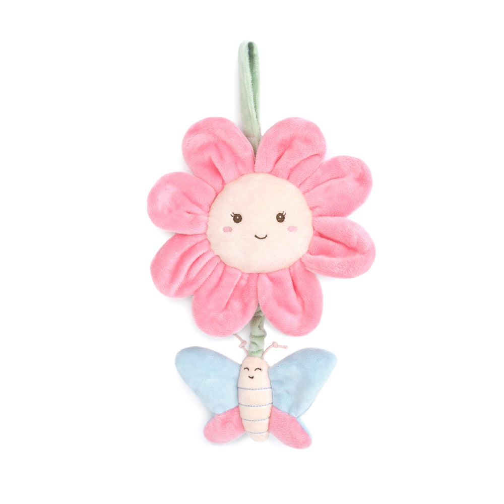 Every day will feel like a BLOOMING adventure with MON AMI's Petunia Music Mobile! With a gentle pull of the plush butterfly at the bottom, it plays Brahms lullaby to sooth little ones to dreamland. This whimsical nursery must-have is as charming as it is calming, perfect for helping babies drift off to sleep. Featuring a sturdy Velcro self-fabric loop for easy attachment to cribs, strollers, or car seats, it brings a touch of floral magic wherever you go! A delightful baby shower gift, this mobile is truly music to every baby's (and parent’s) ears!