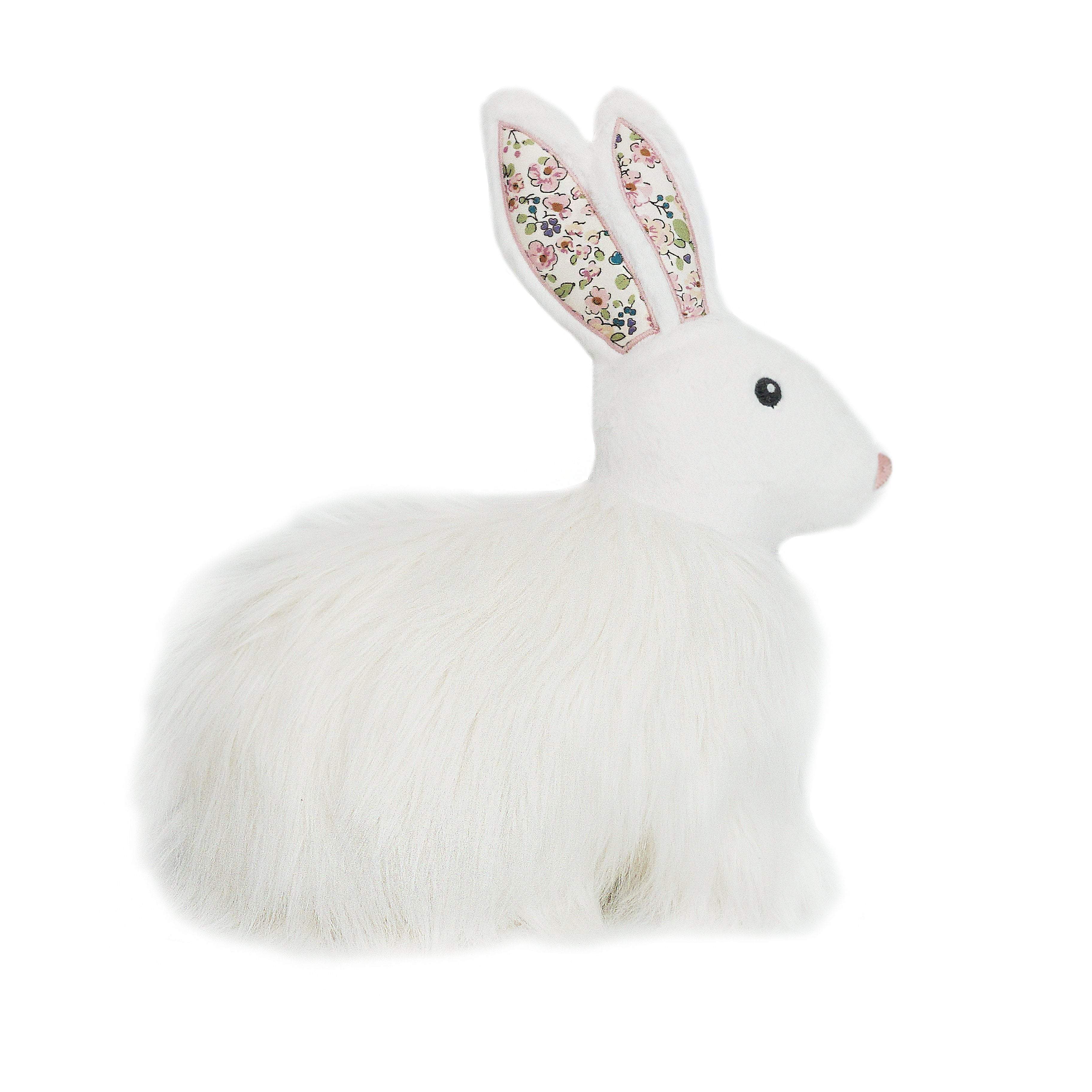 Great news for Faith Bunny fans. Our bestelling heirloom bunny now has her own nursery throw pillow. Beautifully crafted of luxurious velour and soft faux fur with ears in a French-inspired floral print, this one-of-a-kind nursery throw pillow is the perfect accent to liven up any little girl’s bedroom.