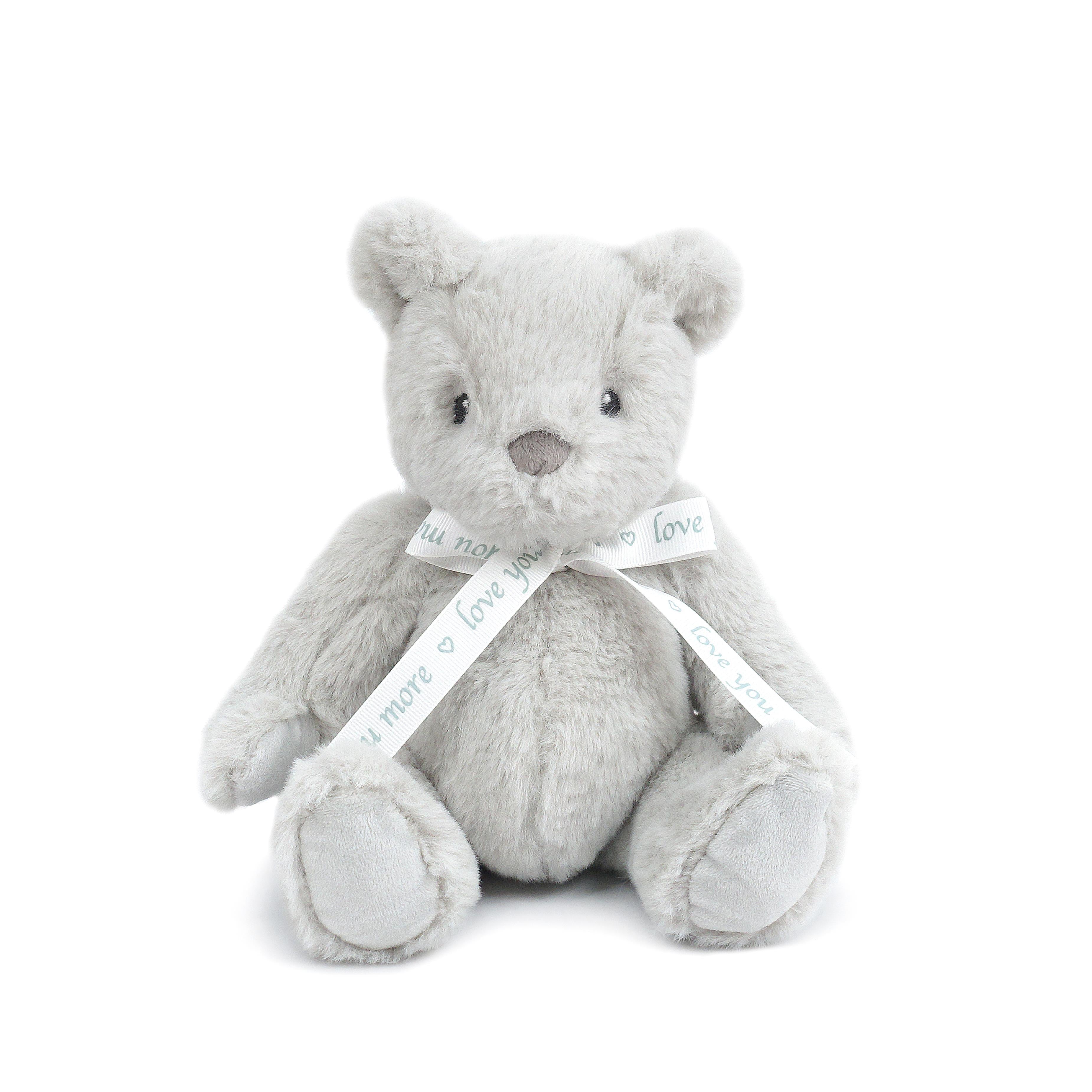 MON AMI’s heirloom Love U Bear says it all…”Love You More" is inscribed on a satin ribbon bow as an endearing sentiment! Love U Bear comes in cream, gray or pink in our signature lux plush with an adorable embroidered face. So sweet and cuddly, Love U Bear is ready to snuggle, hug and love!