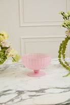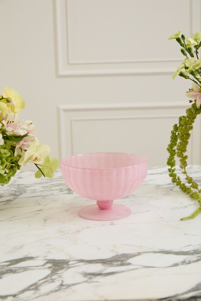 From celebratory occasions to everyday use, the versatile Kyandi Compote with its vintage hue & silhouette is perfect for serving food or displaying florals. Handmade from opaque glass with ribbed detailing, this compote makes a classy centerpiece.