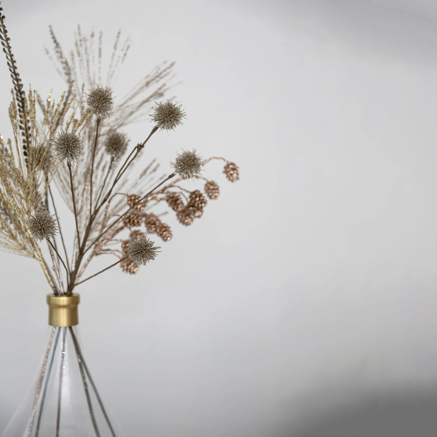 Add instant atmosphere to your home with this beautiful Champagne Faux Leaf Spray. Featuring a delicate champagne glittery finish, this high-quality spray is perfect for adding a touch of warmth and glam to your home décor. Ideal for autumn and winter occasions, it helps to create a unique seasonal display.
