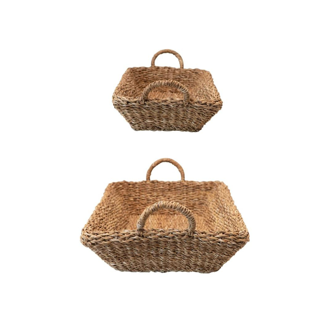 These trays are a beautiful addition to any kitchen. Hand-woven, this seagrass double walled trays stand out amongst normal kitchen decor. These unique pieces are perfect for serving friends and family or for decorative purposes.