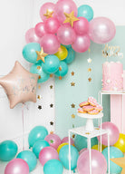 Glossy foil balloon in shape of star in blush color with iridescent scripty Happy Birthday design, size before inflation approx. 47 cm (18.5''), size after inflation approx. 40 cm (15.5'').