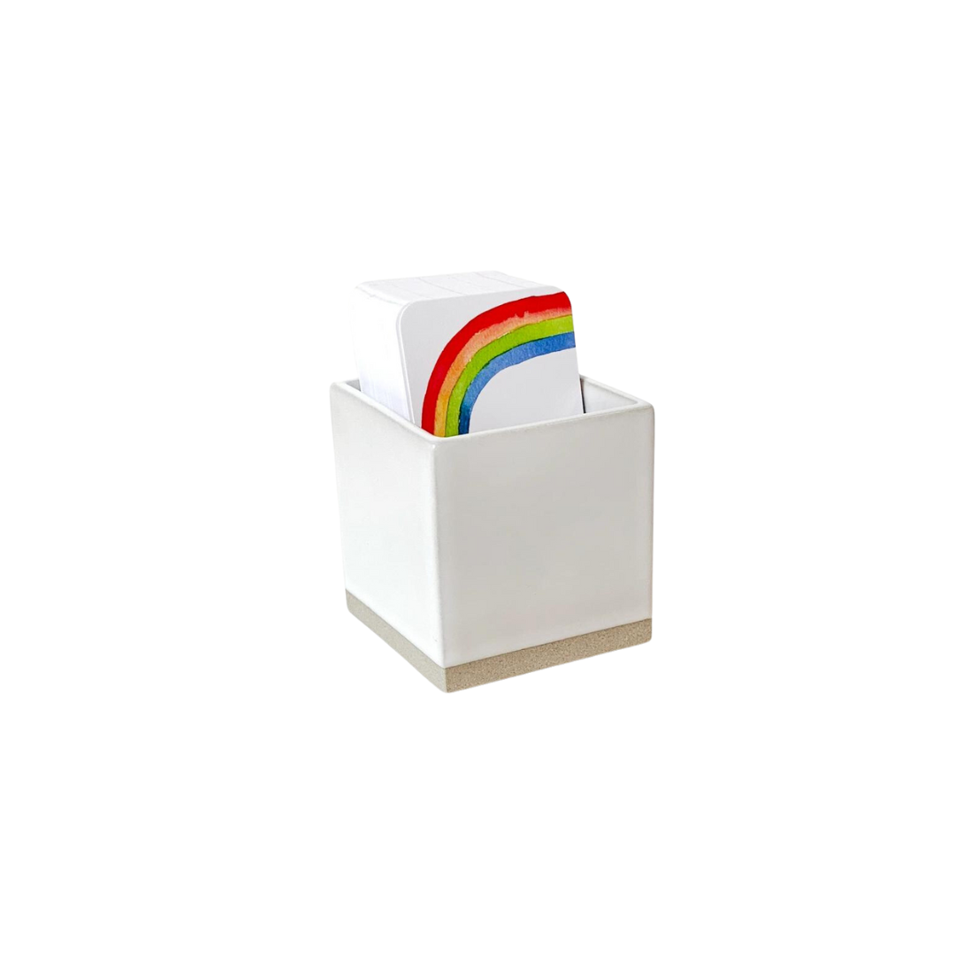 Finally— your Little Notes® have a home! Keep Little Notes within easy reach on your desk or counter in this gorgeous, handmade ceramic holder. Substantial in weight and glazed in a soft, matte cotton-colored finish, this accessory is the perfect gift for all Little Notes lovers! Perfectly fits one box of Little Notes or 150 loose Little Notes (NOT INCLUDED)