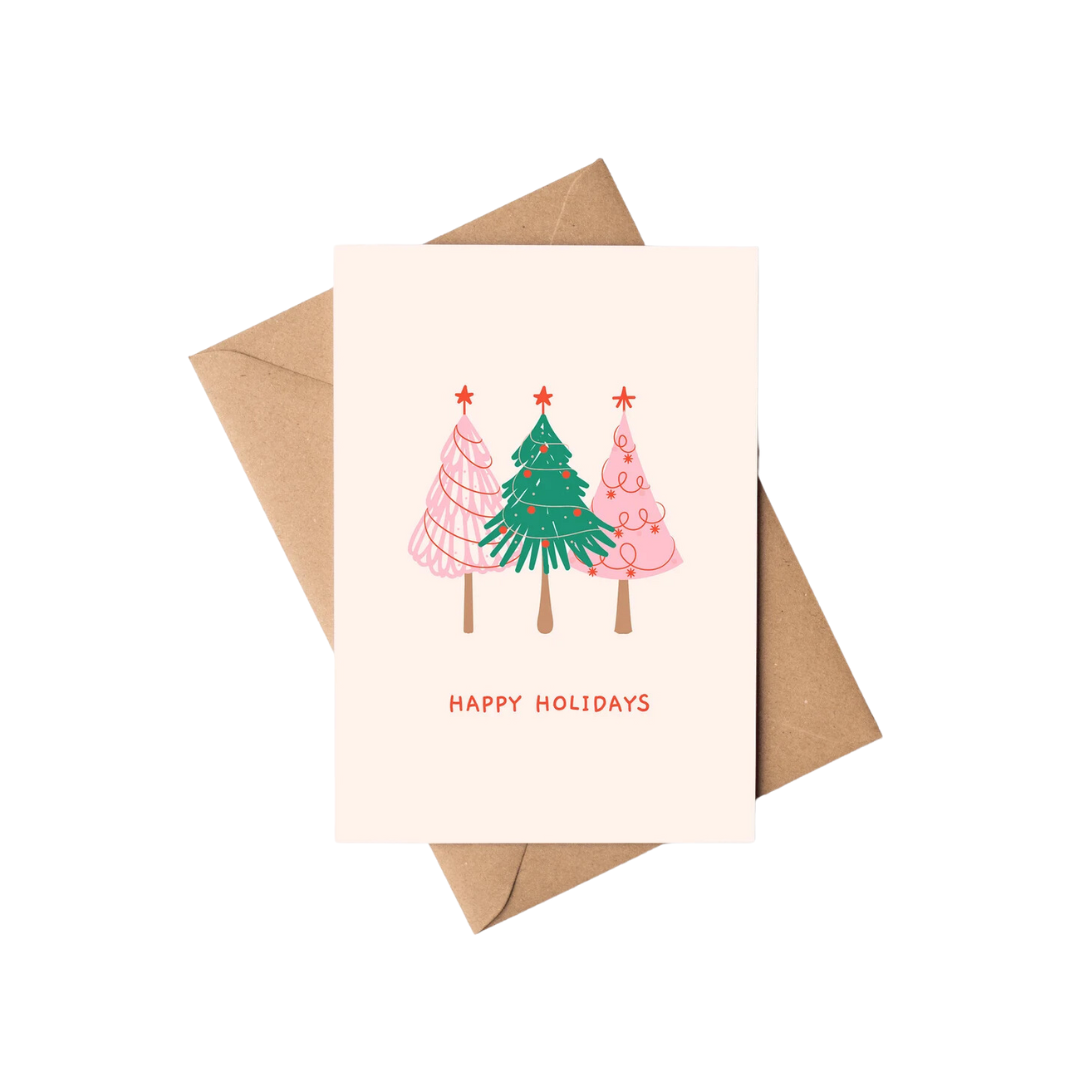 Pink Christmas Tree Holiday Card