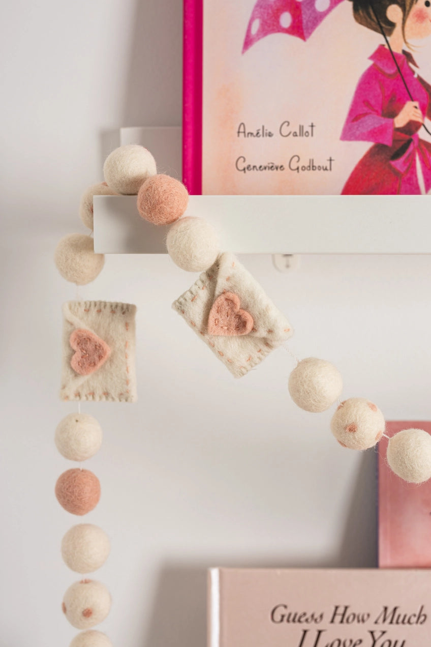 Garlands are the perfect accessory for your nursery, milestone photos, birthday backdrop or holiday display! This Felt Valentine's Day Garland features handmade love letters and felt balls. The perfect garland for your holiday!