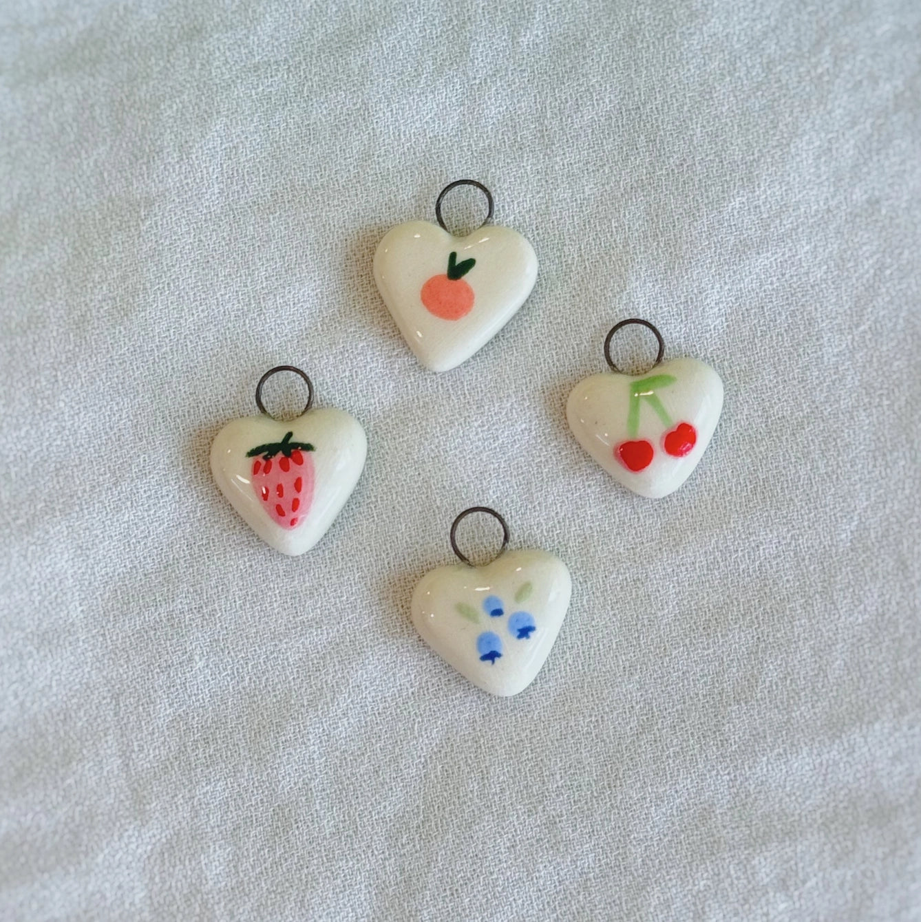 Strawberry Heart Porcelain Charm