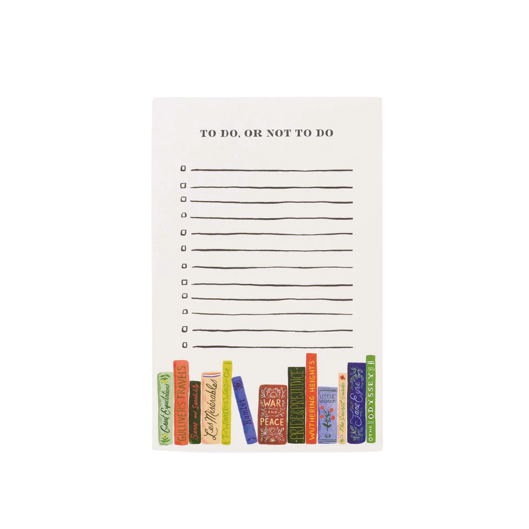 Manage important tasks or jot down a to-do list with our notepad illustrated with our ideal bookshelf, featuring lines and check boxes to keep you on track.