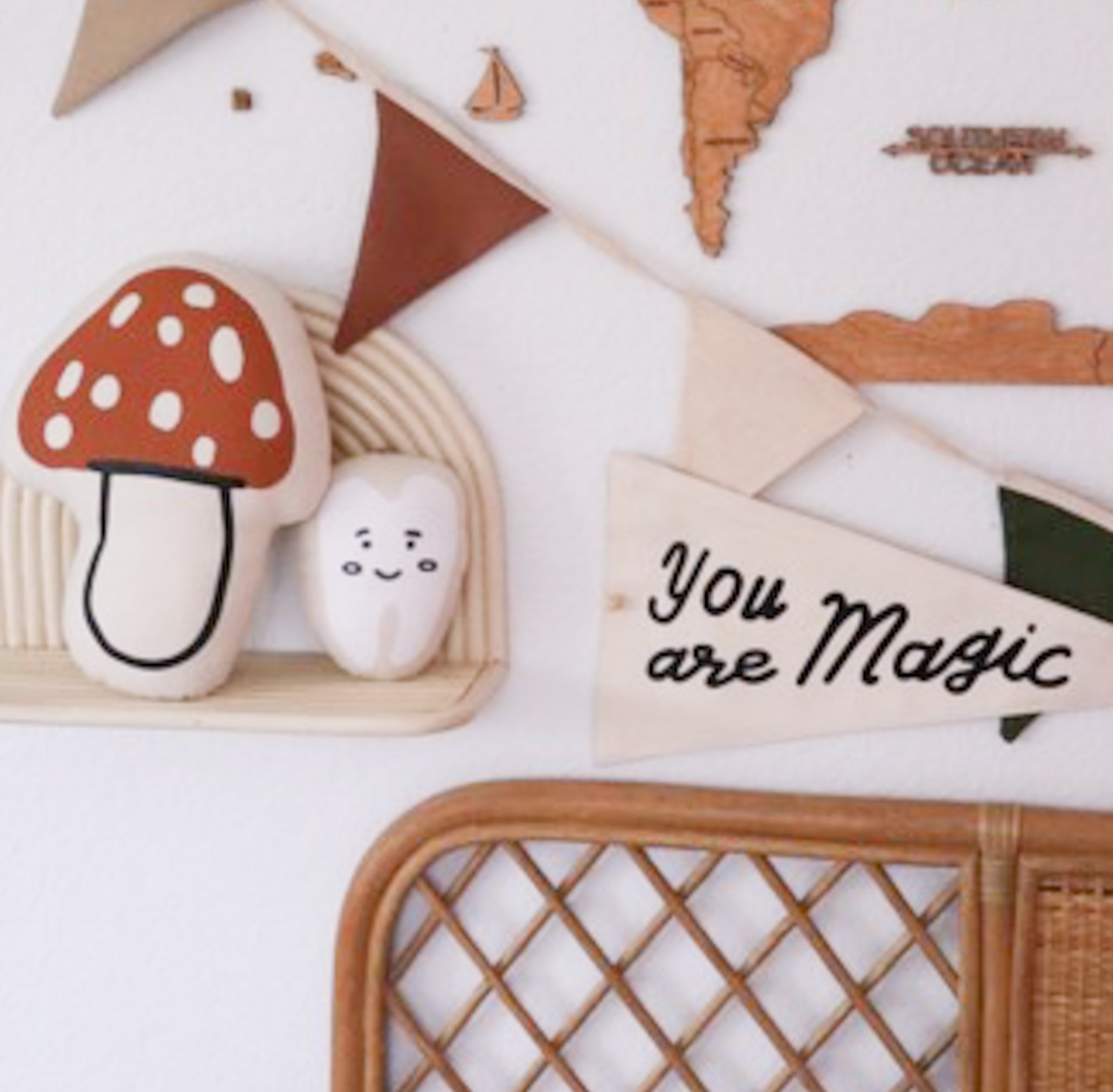 Tooth Fairy Pillow sewn and screen printed by hand on natural canvas by local artisans.
