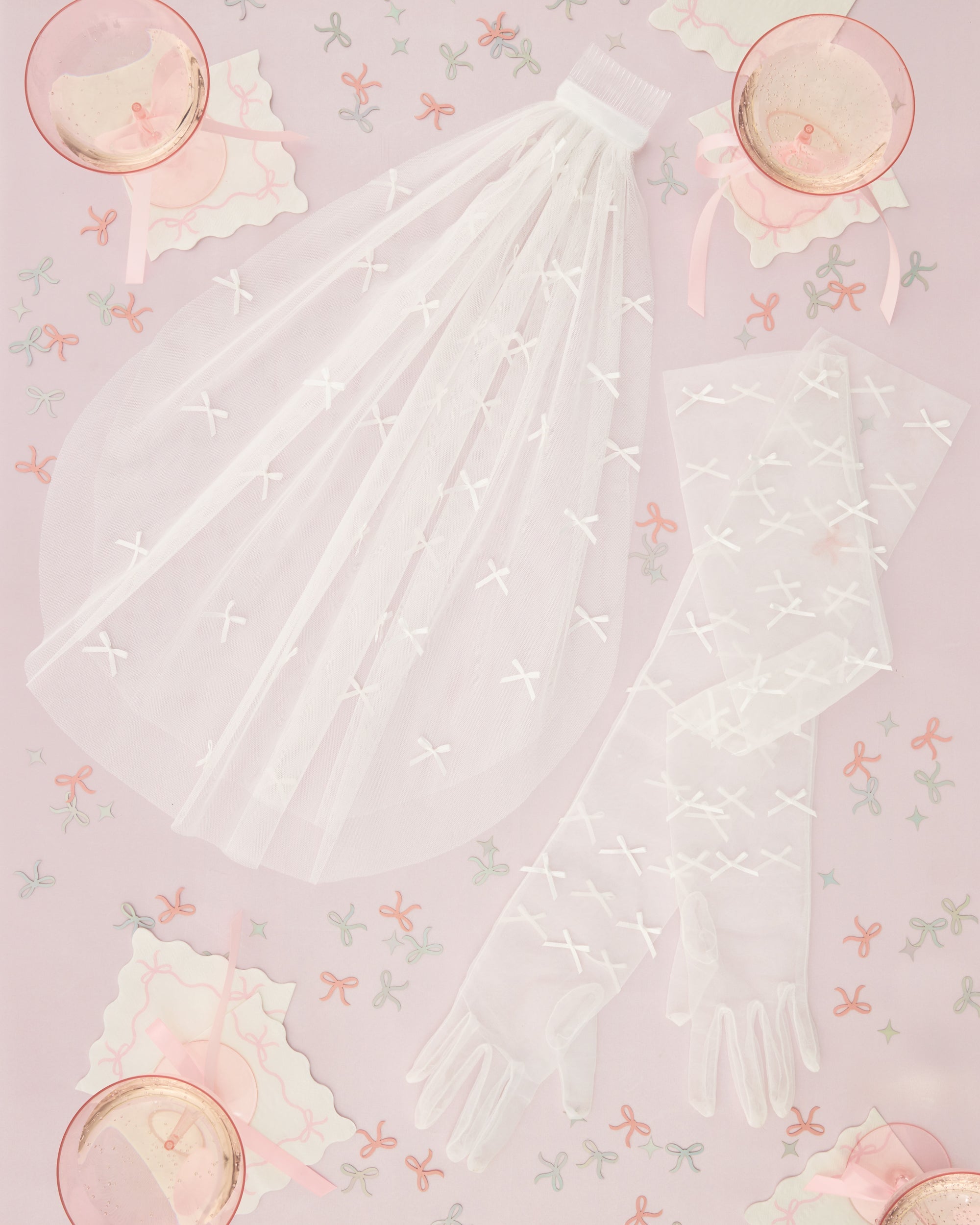 Made for the babes who love everything pretty and pink. Whether its a bday, bridal shower, or bach, celebrate in bow bliss with our super cute sheer bow gloves and veil.